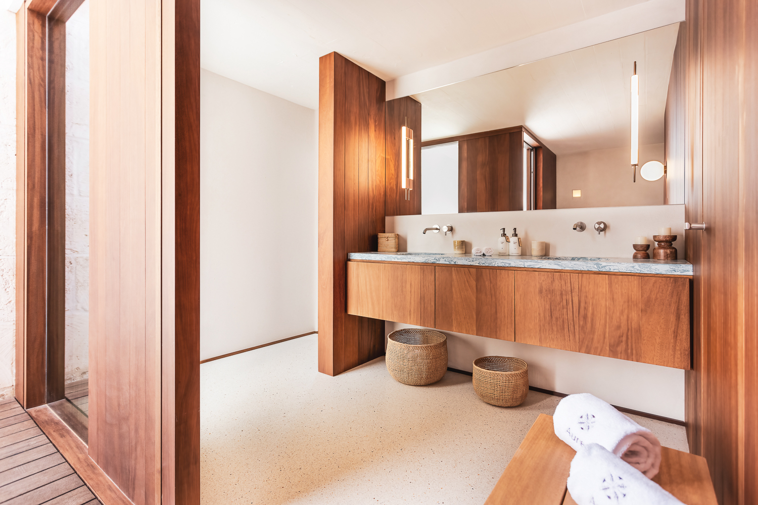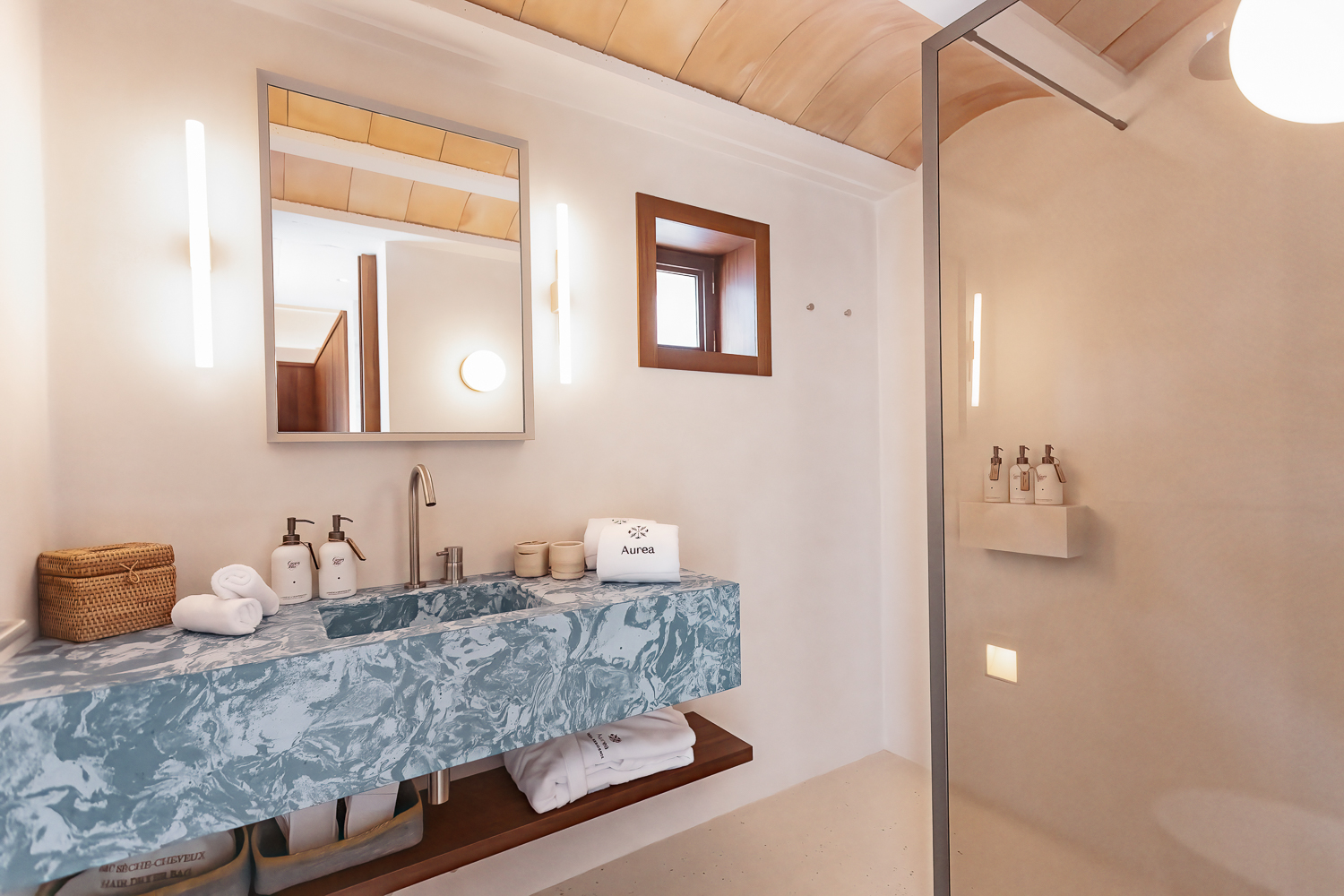 Villa Aurea's six bedrooms are designed for comfort and convenience, each with air conditioning and luxury furnishings. The bathrooms are modern and well-equipped, with amenities such as underfloor heating and high-quality fittings. The villa also includes a self-contained apartment, perfect for added privacy.