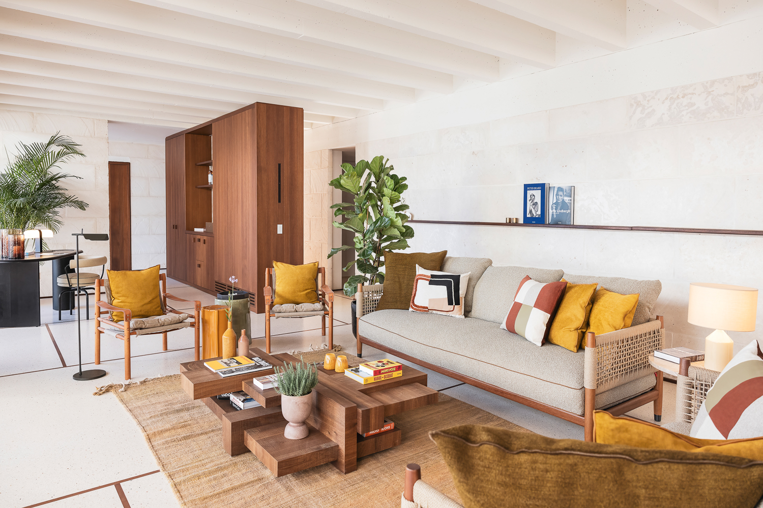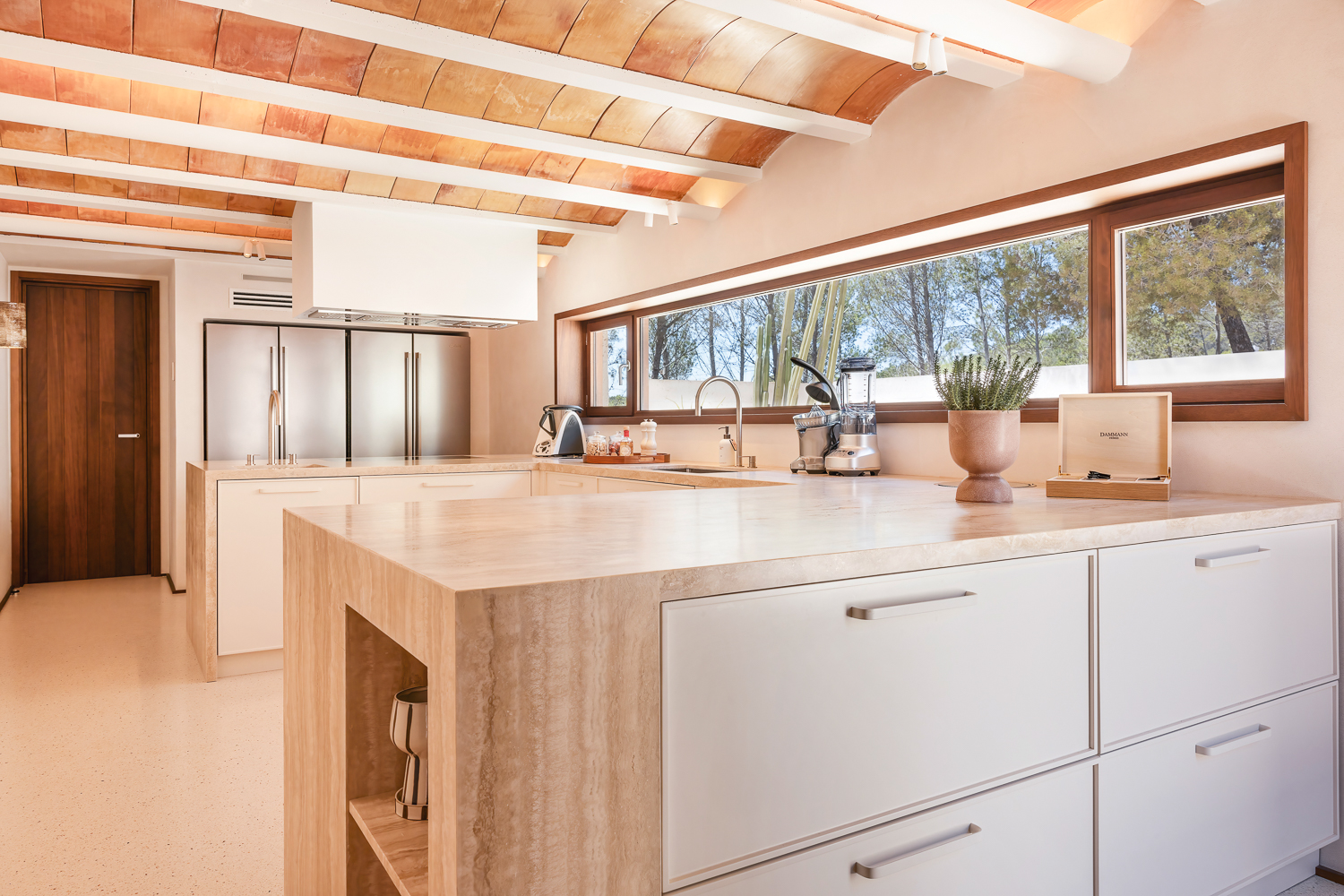 The interior of Villa Aurea combines modern comfort with traditional charm. The living room is designed for relaxation with comfortable seating and a state-of-the-art sound system. The dining room offers ample space for meals, while the fully equipped kitchen features an electric hob, oven, microwave, dishwasher and Nespresso coffee machine. Special features include a breakfast room, a chill-out area, and an office.