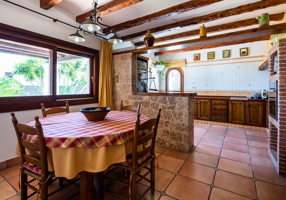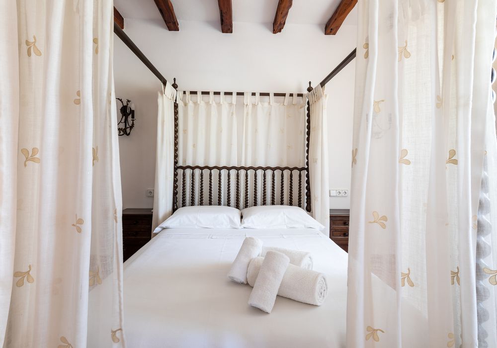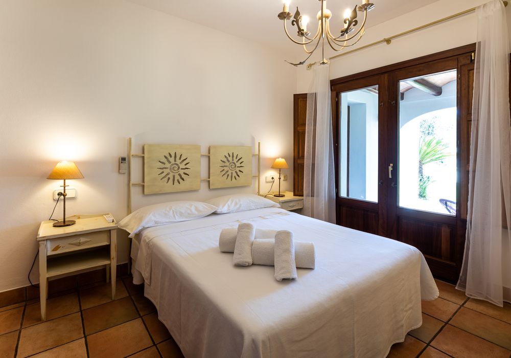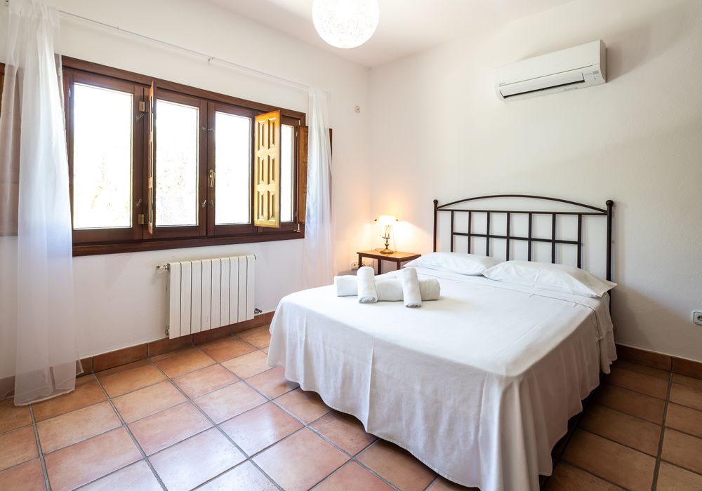 Ca Na Marta cuenta con cuatro dormitorios dobles, con cama matrimonial, y tiene capacidad para alojar a 8 personas. Dispone de unas instalaciones magníficas y está equipado con un amplio salón con techo de sabinas, tres baños completos interiores, un aseo y un baño exterior, cocina completa, barbacoa, equipo de música, aire acondicionado, equipo de música, televisor de pantalla plana… y una estupenda piscina en la que refrescarse.