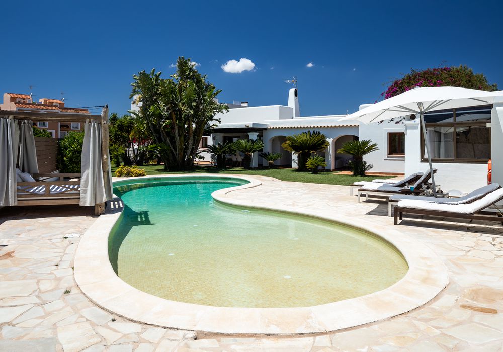 Ca Na Marta es nuestra casa con piscina para alquiler en Ibiza. Se trata de un alojamiento tranquilo, ubicado en el centro de la parroquia de Nuestra Señora de Jesús, a solo 3,3 kilómetros de la ciudad de Ibiza, a 3 kilómetros del puerto, a 10,3 kilómetros del aeropuerto y a solo 2,3 kilómetros de la conocida playa de Talamanca. Un entorno privilegiado en el que poder descansar y desconectar como te mereces.